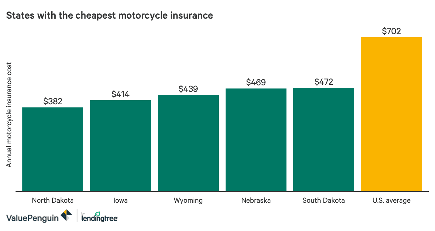 Is 702 per year but can vary by over 250 based on location. There are different types of cover when it comes to motorcycle insurance and many factors affect the cost of your premium. Although the exact figure will vary depending on age driving history and various other factors you can expect to pay around 382 in North Dakota 414 in.