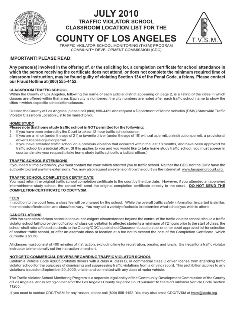 Traffic School List Department Of Motor Vehicles Los Angeles